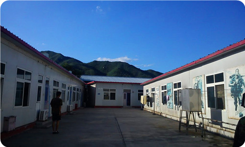 南口軍訓基地占地一共 590 畝,其中訓練營區 120 畝,學農果園 470 畝,學校綠化面積占 30% ,除操場外花草樹木隨處可見,空氣清鮮,環境優美。建有五個學生住宿營區,能同時容納 3500 人訓練、住宿,每天 24 小時供應軍訓學生開水;有四個訓練操場,其中一個操場有閱兵道、升旗和閱兵臺(兼文藝演出舞臺);有同時容納 2000 人就餐的餐廳(兼禮堂)、教師餐廳,餐廳操作間面積 500 平米,有近 60 名炊事人員,并設有回民灶;有同時容納 1000 人淋浴的浴室;有學生軍訓換洗軍裝 40000 套;有帶有衛生間的。招待所 2 個,可同時容納 140 人帶隊教師居住。另設卡拉 OK 室、健身房、臺球室、乒乓球室,有各種棋牌和供教師開會使用的會議室。我校建有 100 平米正規的醫務室,配備正式醫師。我校建有服務社,提供給學生不出營區購物。在學農果園,有櫻桃、桃、杏、各種蘋果和干果數十種,可供學生采摘。學習農業技術,勞動鍛煉等社會實踐活動。
