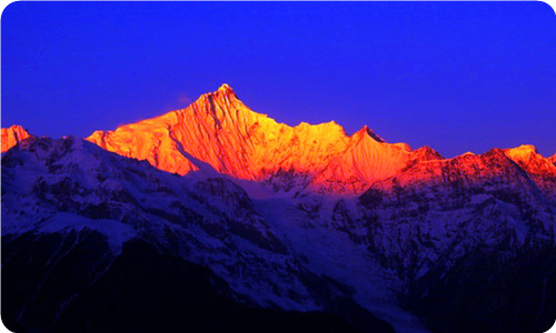 早起后在飛來寺看梅里雪山的日出日照金山,早餐后,驅車從飛來寺出發,經過瀾滄江大橋, 一個小時左右將到達明永村。從明永村開始徒步地球上罕見的低緯度、低海拔的明永冰川。按本地居名的說法:這是座神山,上冰川朝圣必須步行上山以示心誠,但明永冰川實在是險峻無比,因此上明永冰川需要借藏民的幫助用騾子和馬牲口載上去(只能載一程路,徒步來回四到五個小時)。回奔子欄住宿。住:奔子欄標準間。
