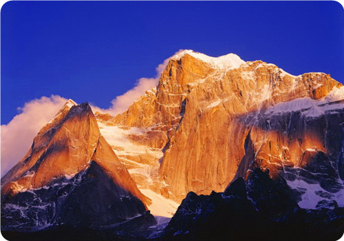 第三天:清晨打開窗戶雪山已經在你面前,收拾好個人裝備馬幫已經在等咱們了,今天我們正式進入四姑娘山長坪溝,長坪溝有五分之一的路是有棧道的,咱們先在棧道上適應一下高度慢慢走走,走完棧道后與馬幫匯合(馬是不讓上棧道的,呵呵)這時如果你有些累了你可以騎在馬上欣賞四周的風景,如果你適應的不錯,那你可以繼續享受徒步山間的樂趣,今天的路上風景會美不勝收,但我們的營地更美,木騾子營地的位置是這樣的,營地的右邊緊挨著幺妹峰,正前邊是駱駝峰,左邊是一條安靜的小河,而營地本身是一片美麗的高山草甸,晚上我們就要睡帳篷了,如果愿意你可以在入睡先拉開帳門,躺在帳篷里仰望美麗的銀河。