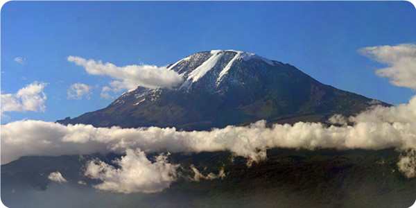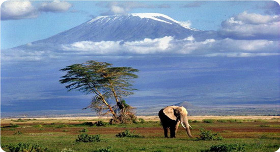 乞力馬扎羅山是非洲的屋脊,位于坦桑尼亞的北端和肯尼亞交界的地方,山頂終年積雪,成為赤道附近的一個壯麗的風景,也是地球上唯一位于赤道線上的雪峰;而著名作家海明威的小說《乞力馬扎羅的雪》更是讓這座神奇的山永存于人們的想象中。生長在這里的植物動物都很具特色,5896米高的乞力馬扎羅不僅僅是非洲的高山,更以獨特的地理風貌著稱世界。山腳下便是世上養育萬千動物的草原馬賽馬拉。從山腳到山頂大約二、三十公里的路程上,可以看到相當于陸地上從赤道到北極大約一萬多公里的氣候類型。籠統地說,乞力馬扎羅可以分成四層,最下面一層是熱帶雨林,中間的腰部有一條沼澤地帶,再上面是高原沙漠,而頂部,超過了雪線以上的地方則是高山雪峰。遠遠地看,乞力馬扎羅就像一位拖著長長的灑地的綠裙,系了一條細細的腰帶,身著緊身淡黃襯衫,頭上俏皮地戴了頂白色小帽的青春少女。