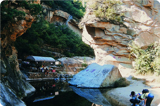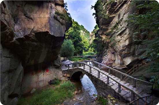 這條峽谷俗稱轱轆峪,窈窕峽長蜿蜒曲折,峪谷兩壁陡峭奇聳,峰巒疊嶂。從頭到尾,處處新穎,決無重復之感,一進潭頭,就把游人引入到瓊山閑境,使人心礦神怡,欣然前往。