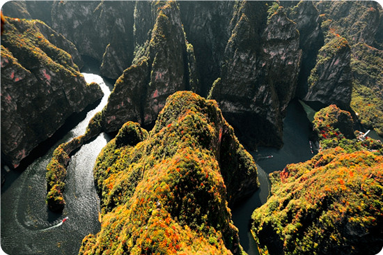 龍慶峽,古稱“古城九曲”,地處于北京市延慶縣古城村西北的古城河口,距離北京城區85公里。峽谷口,一條258米長的巨龍,頭下尾上的懸掛于千仞峭壁,金鱗閃爍,須爪飛揚,這就是堪稱亞州的龍形電梯,游人乘入其間不知不覺之中,即達船臺。而凌空飛越的速滑溜索、驚險刺激的高崖蹦極,欲試心顫,欲罷不能。
