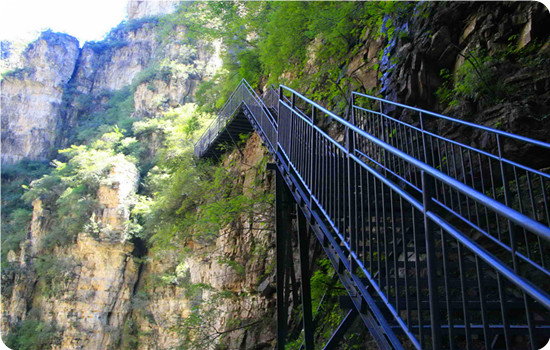 玉渡山之美,在于山、石、林、泉、瀑、花、草一應俱全、那渾如天籟的感覺,在于清、幽、靜、野之中。玉渡山石灰巖峽谷玉渡山又稱“一垛山”,是一座高不過20米的離堆山,海拔860米,山頂平整,長滿灌叢,山雖然不高但極陡,如平地拔起。玉渡山周圍郁郁蔥蔥,是一片綠的世界。植被極好,山下溪水四季不斷流,嚴冬不凍。溪中大小卵石磨圓較好,春、夏、秋三季花開不斷,山清水秀,鳥語花香,是山、水、林絕妙配合的靜谷風光。