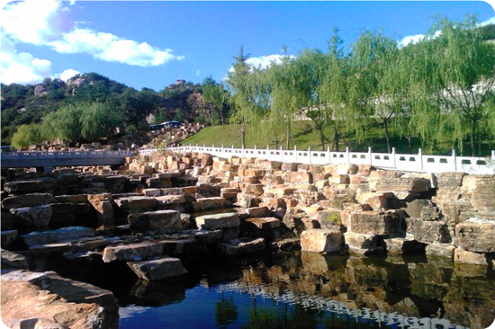 云蒙峽風景區位于密云縣石城鄉水堡子村西,在密云水庫西側,云蒙山東南坡。距密云縣城約22公里,距北京東直門90公里。云蒙峽風景區以雄險而曲折的西北-----東南向峽谷為主軸,上下串聯著數十個不同特色的風景小區。而且越深入云蒙峽腹地,那些奇峰、怪石、清潭、飛瀑、野花、密林等勝景也越來越多和越優美。這里山巒巍峨聳拔,溝壑切割幽深,峰石造型似人似獸,潭瀑交輝若鏡若練。云霧朦朧,變化莫測;花木芬芳,香溢百里。游者處之,無不令人一飽眼福。春季入峽,山花爛漫,桃杏爭艷;仲夏入峽,清泉甘冽,消夏宜人;金秋入峽,紅葉滿山,碩果累累;隆冬入峽,雪嶺晶瑩,冰瀑奪目。