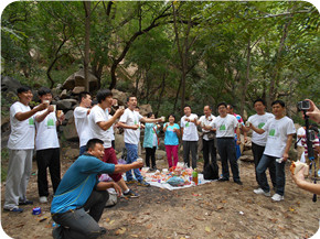 客戶名稱:韓健物業集團北京分公司 活動時間:2015年8月 活動人數:2批—68人 活動地點及形式:延慶水泉溝峽谷—野外徒步穿越 活動項目:狹路相逢 鉆木取火 諾亞方舟 中流砥柱 活動描述:由韓健物業集團北京分公司組織,天地之美戶外拓展訓練公司承辦,在北京延慶水泉溝峽谷展開了一天的野外徒步穿越活動。團隊以親近大自然,凝聚團隊力量為主題,活動中我們勇于自我犧牲,奉獻自己,照亮他人,只有這樣才能體會團隊的價值 |