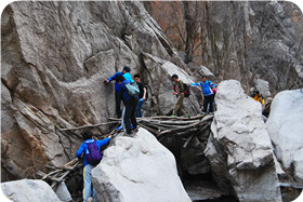 活動描述:由北京金視聽廣告有限公司組織,天地之美戶外拓展訓練公司承辦,在北京延慶水泉溝峽谷展開了一天的野外徒步穿越活動,在活動中我們需要相互配合和協調,形成力量的整合才能完成共同的任務,要知道,只要不放棄,一切皆有可能。