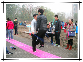 活動時間:2015年11月14日 活動人數:56人 活動地點及形式:東小口森林公園,公園定向 活動項目:一字馬、表情拍照、指壓板、撕名牌 活動描述:由中石化公司組織,天地之美戶外拓展訓練公司承辦,在北京市朝陽區東小口森林公園內一天的內部團隊建設活動。團隊建設活動以凝心聚力青春飛揚為主題,將輕松愉悅公園定向拓展活動與流行時尚的指壓板和撕名牌相融合,提高大家的參與度團隊的凝聚力。 |