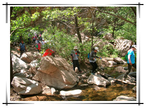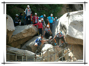 活動描述:由中石化國勘公司組織,北京天地之美戶外拓展訓練公司承辦,在昌平區水泉溝野外穿越的戶外拓展訓練中,讓我們明白了個人的力量是有限的,而集體的力量是無窮的。一個人離開了集體,或是集體里的人不夠團結,其中某一個環節不夠嚴謹,都有可能出現危險。所以一句話說的非常有道理“團隊齊心,其力斷金”。